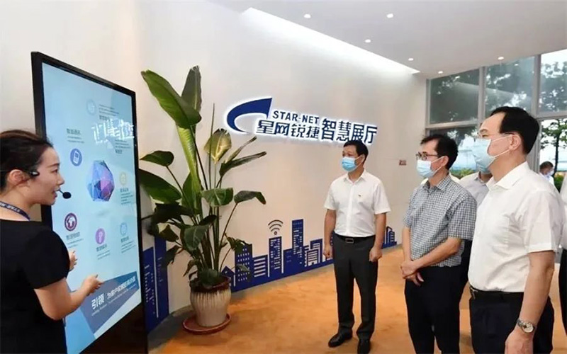 圖|林寶金在星網(wǎng)銳捷智慧展廳聽(tīng)取智慧業(yè)務(wù)介紹