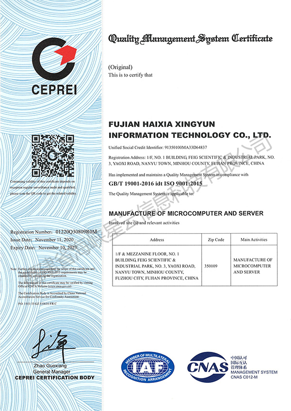 ISO9001質(zhì)量管理體系認(rèn)證證書